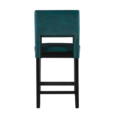 Put a stylish spin on your next seating solution with the Vega Hardwood Counter Stool from Linon. Crafted from durable hardwood in a rich ebony finish, this faux-leather counter stool comes complete with a padded seat and back so you can relax in perfect comfort. Line a few of them up along your counter or kitchen island to create a cozy space where you, your family and guests will love to gather.
