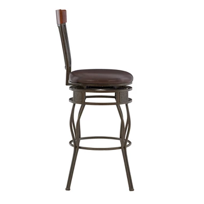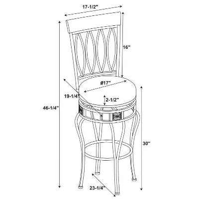 The elegance and unique style of this 30″ Four Oval Back Bar Stool will carry throughout your kitchen, dining, or home pub area. Crafted of metal and highlighted with subtle curves and a distinctive Four Oval back, this stool is a positively striking addition to your home. The cushion is piled high for extra comfort, and the chocolate wipe clean vinyl seat is pliable and resistant to everyday wear and tear, making this stool versatile for any gathering area. 275-pound weight limit.