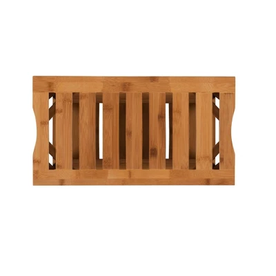 Add easy style and function to your bathroom with the Bracken Bamboo Stool. The stool features a spacious curved top and slightly splayed legs. A small shelf is perfect for holding linens or other necessities. Crafted from solid bamboo, the stool is both sturdy and durable.