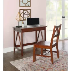 Our Titian Collection has a simple yet eye-catching design that is matched with incredible durability. This versatile laptop desk makes good use of space with ample work and display space. A single, wide drawer provides ample hidden storage space for small items or even a keyboard. A neutral, classic Antique Tobacco finish allows this piece to easily complement your homes decor.