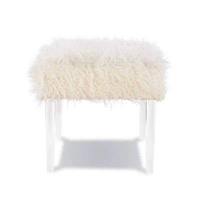 The luxurious Faux Flokati Acrylic Leg Bench brings instant glamour to your space. With the soft, plush top and clear acrylic tapered legs, the piece is perfect for using as a bench or ottoman. Place at the foot of your bed, entryway or living space, the bench is stylish and versatile addition to your decor.