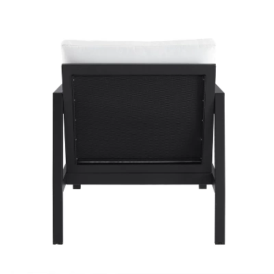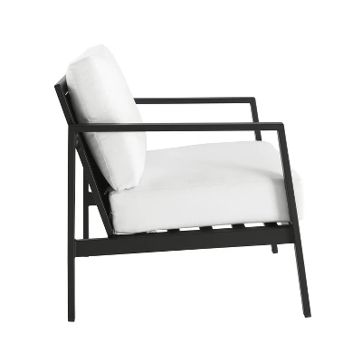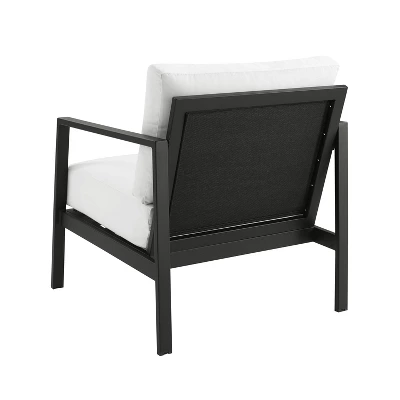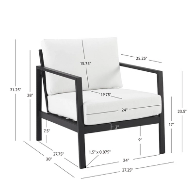 Sleek, comfortable, and well suited for the great outdoors, this modern chair is the perfect addition to your patio, porch or rooftop. The black powder coated aluminum frame is resistant to rust and incredibly lightweight for ease of transport when you want to shimmy into the sun. Plus, there’s no need to worry about your cushions losing their vibrancy after only a few seasons, as the white Sunbrella™ fabric is fade, stain and mold resistant! Sit back and enjoy tomorrow’s style and comfort for years to come.