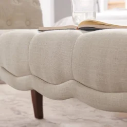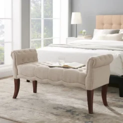 No matter where you place the Madison Roll Arm Bench – Linon, it will feel right at home. The dramatic curves of the seat and arms are enhanced with tightly tufted fabric. Full of vintage allusions, this traditional backless bench still feels extremely modern and inviting, offering up two extra seats in your living space for friends and family to congregate and celebrate.