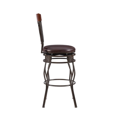 The elegance and unique style of this 30″ O&X Back Bar Stool will carry throughout your kitchen, dining, or home pub area. Crafted of metal and highlighted with subtle curves and a distinctive O & X back, this stool is a positively striking addition to your home. The cushion is piled high for extra comfort, and the chocolate wipe clean vinyl seat is pliable and resistant to everyday wear and tear, making this stool versatile for any gathering area. 275-pound weight limit.