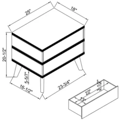 Drawer: 21-1/4” x 13” x 3-1/2”H