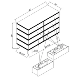 Small Drawer: 21-1/4” x 13” x 3-1/2”H
