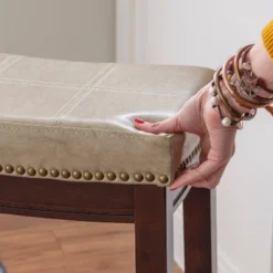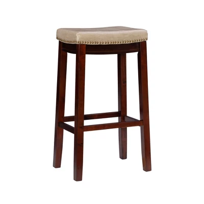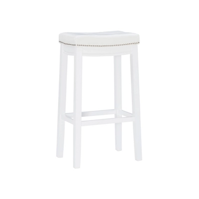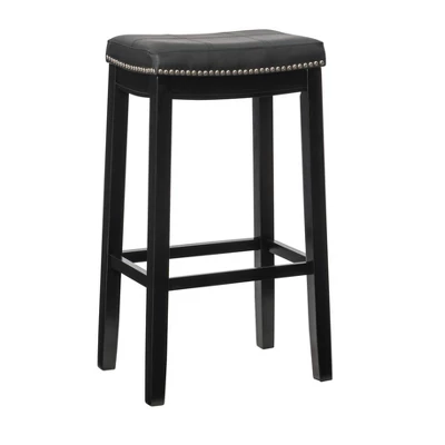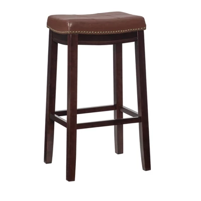Saddle up in contemporary style with the Padded Saddle Barstool. These durable hardwood bar stools are available in your choice of finish and can support up to 250 pounds with ease. At 32″ tall, these swanky counter stools have a bronze nailhead trim for a modern Western look.