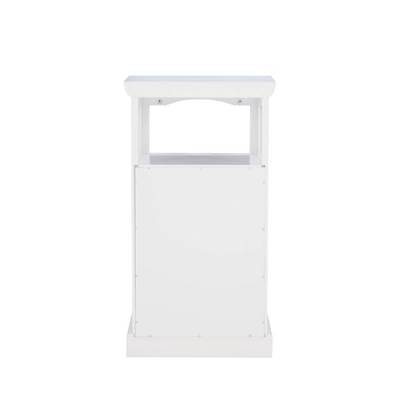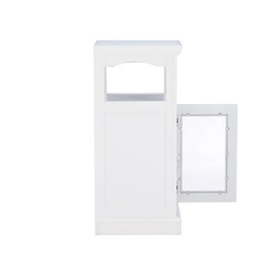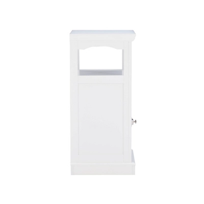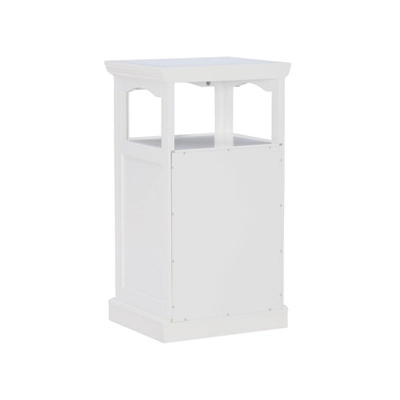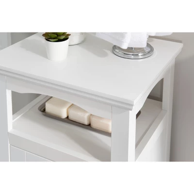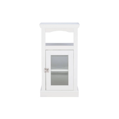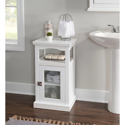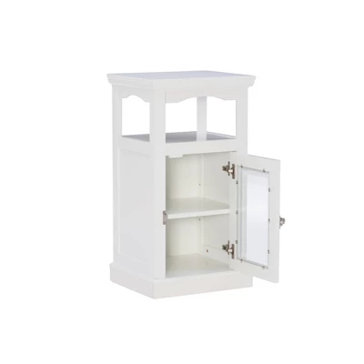 The Scarsdale Demi Cabinet is ideal for providing storage in a small space. The cabinet has a white finish that easily complements any existing décor. A glass door accented by a silver hinge, opens to reveal two shelves for storage. An open shelf is perfect for keeps linens close at hand.