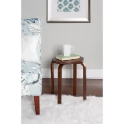 17-1/2″ Bentwood Stacking Stools. The simple yet sturdy design of this stool will provide the extra seating you need in your kitchen, dining or home pub area. The stackable function allows for easy storage to save space when not in use. The beautiful finish allows this stool to blend into virtually any decor. 250lbs weight limit
